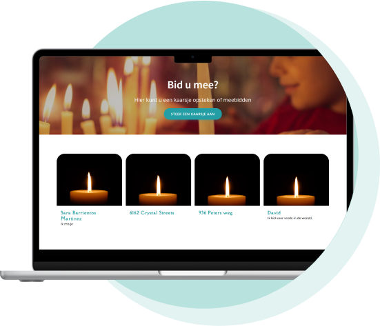 Een digitale kapel opent nieuwe mogelijkheden voor uw gemeenschap om verbonden te blijven, ongeacht de afstand. Personaliseer de ervaring met verschillende kaarsjes, kleuren en foto’s om uw kapel uniek te maken.